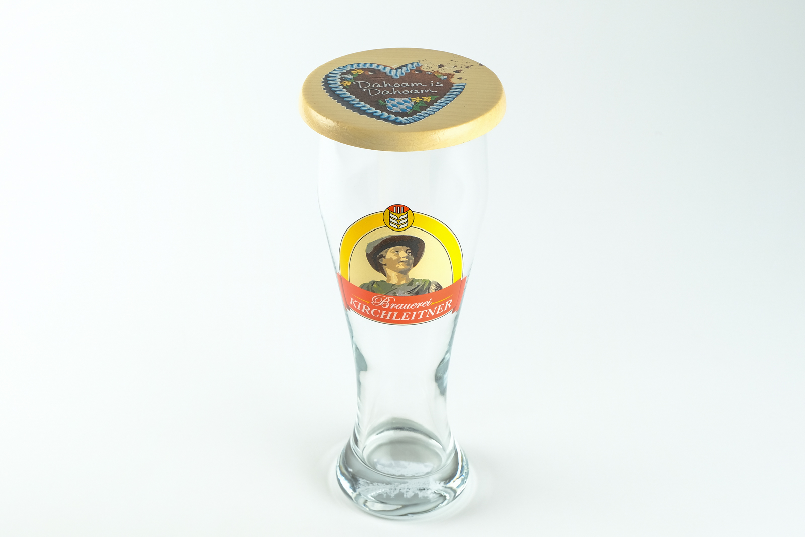 Fanset "Kirchleitner Weißbierglas und Glasabdecker aus Holz mit farbigen DiD-Logo"
